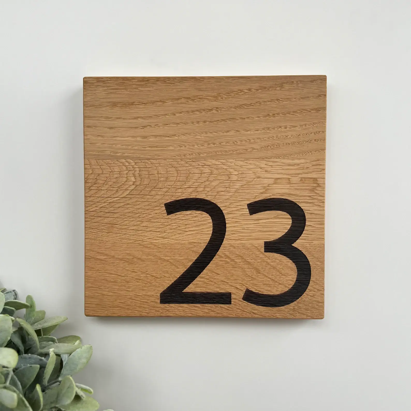 Numar Apartament Lemn Patrat Numar Casa Lemn Patrat 20x20cm – Model Patrat